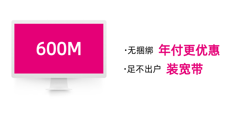 | 600M低消宽带 | 360元 | 100元 | 免费租用 |