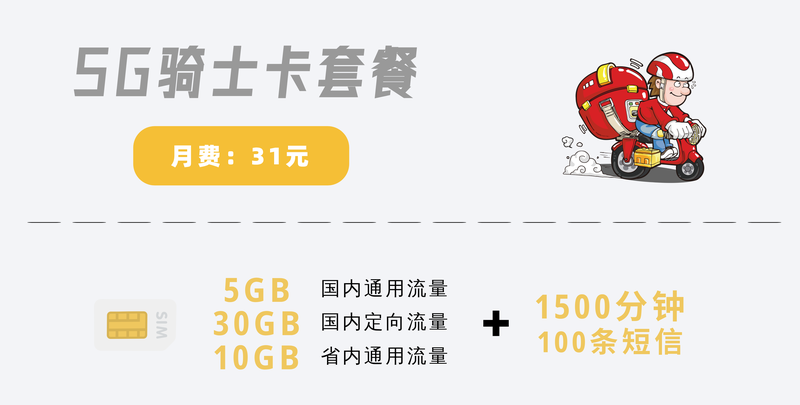 | 骑士卡39元 | 套餐月费 | 39元 | 套餐外资费:国内流量5元/GB;语音0.1元/分钟;短信0.1元/条 | |