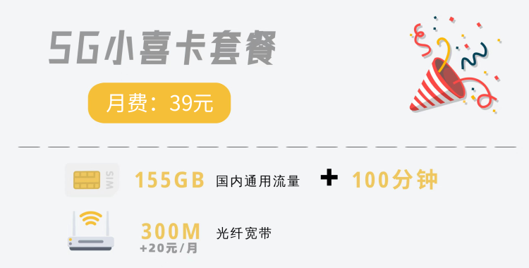 | 原月租:39元/月 | 155G全国通用 | 全国接听免费 |