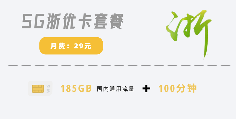 | 29元/月 | 185G | 100分钟 | 仅发浙江 |